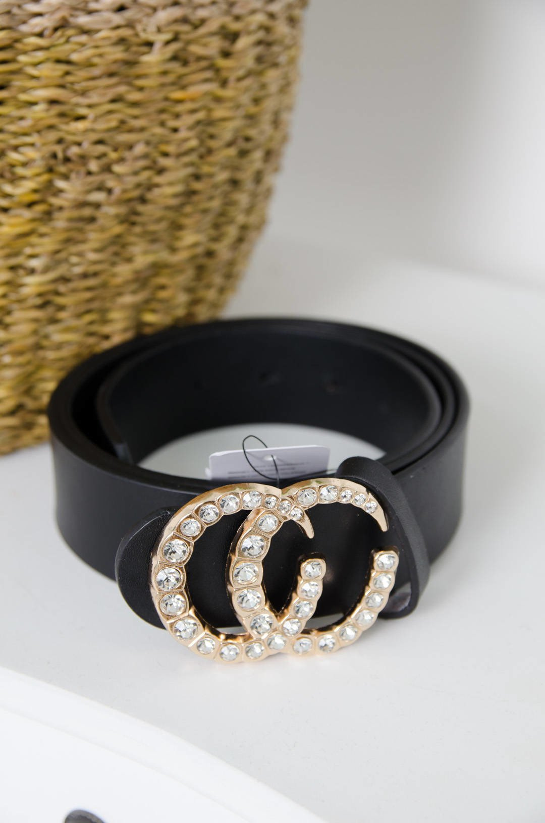 CZARNY SZEROKI PASEK -ZŁOTA KLAMERKA Z CYRKONIAMI