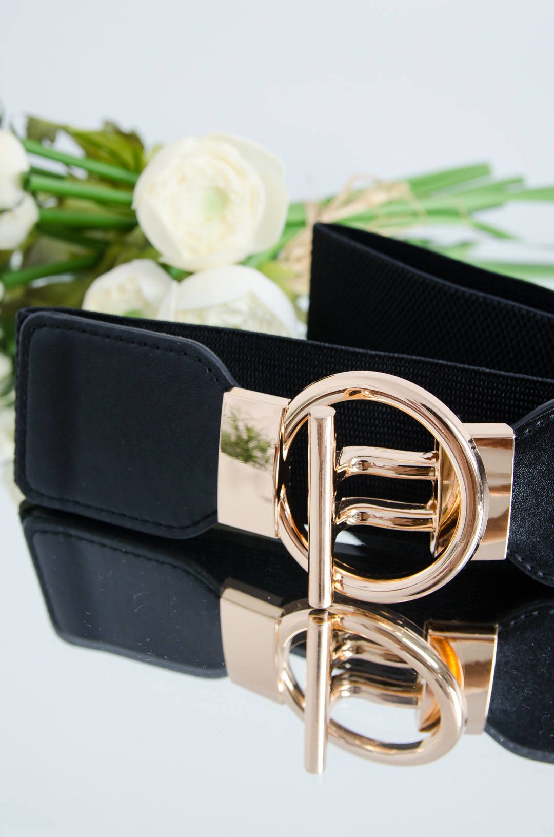 CZARNY PASEK NA GUMIE-ZŁOTA KLAMRA