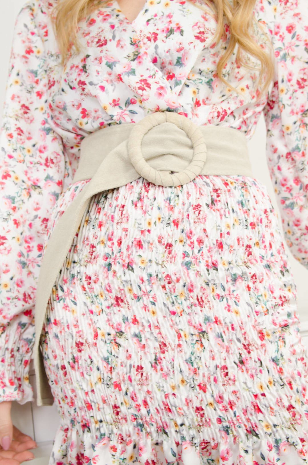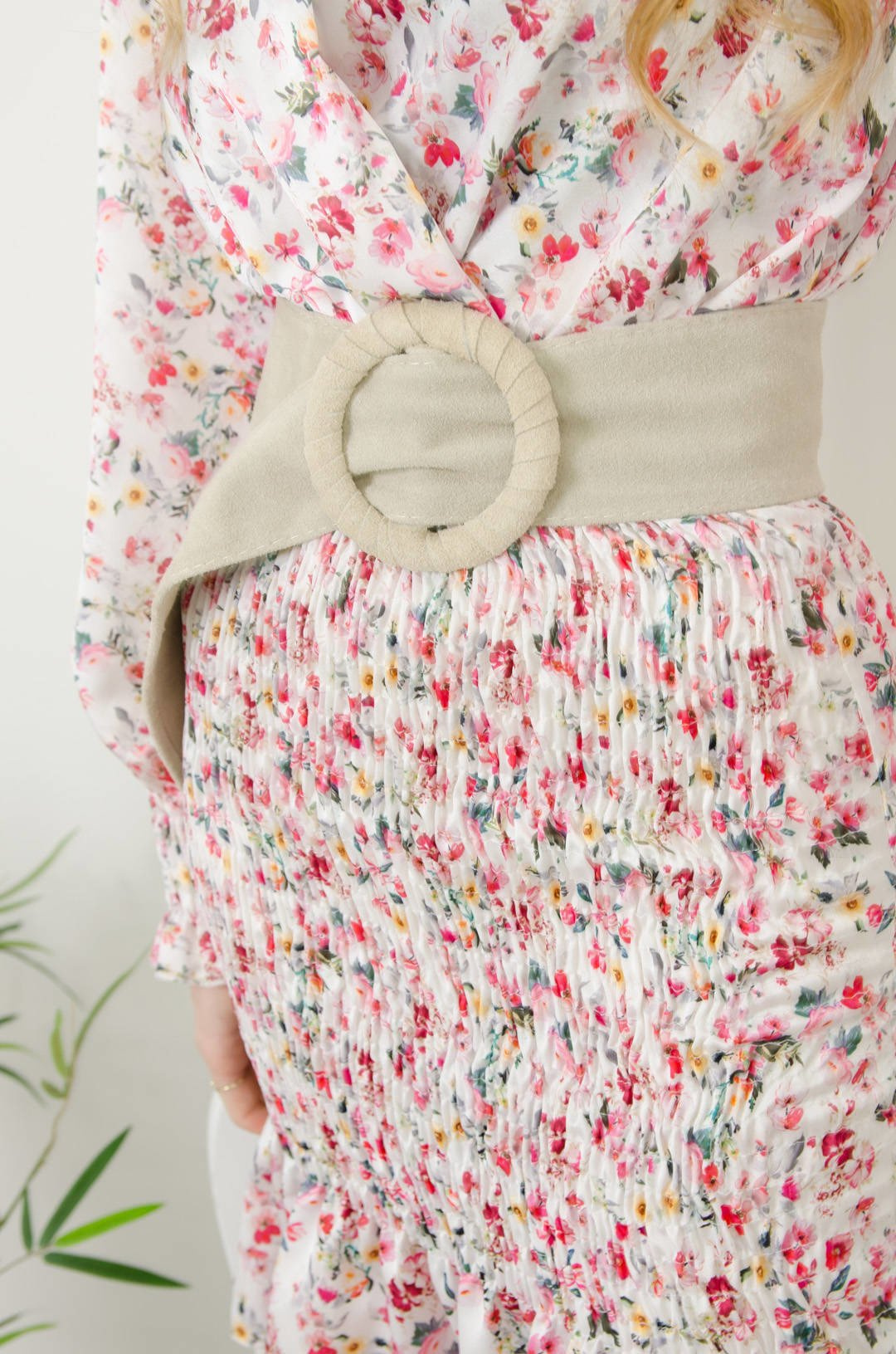 ZAMSZOWY PASEK Z OKRĄGŁĄ Z KLAMRĄ - BEŻOWY
