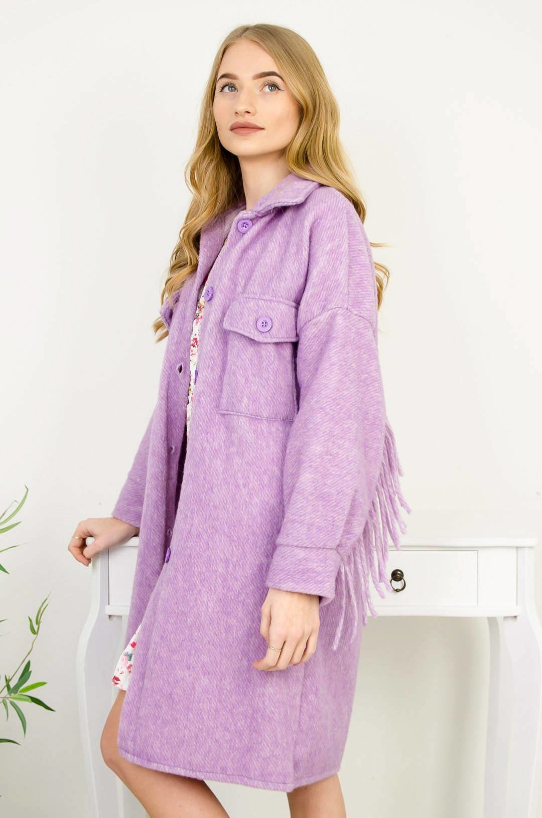 DŁUGA WEŁNIANA KURTKA /PŁASZCZ Z FRĘDZLAMI