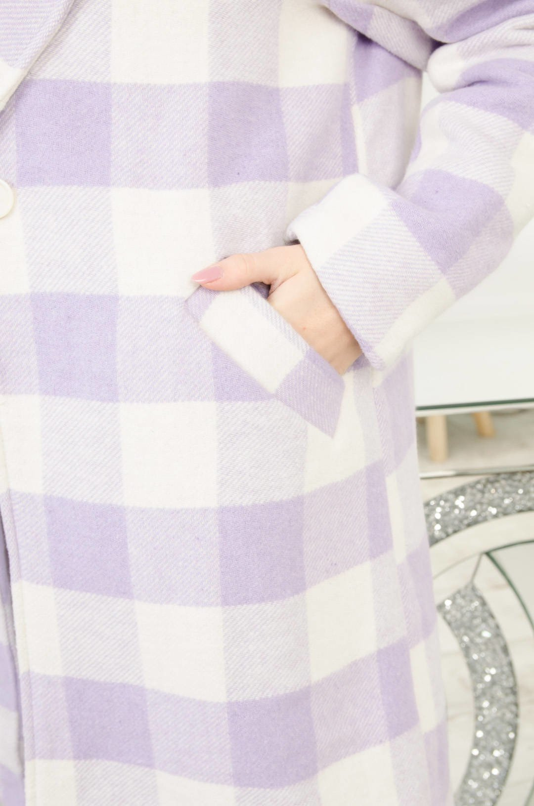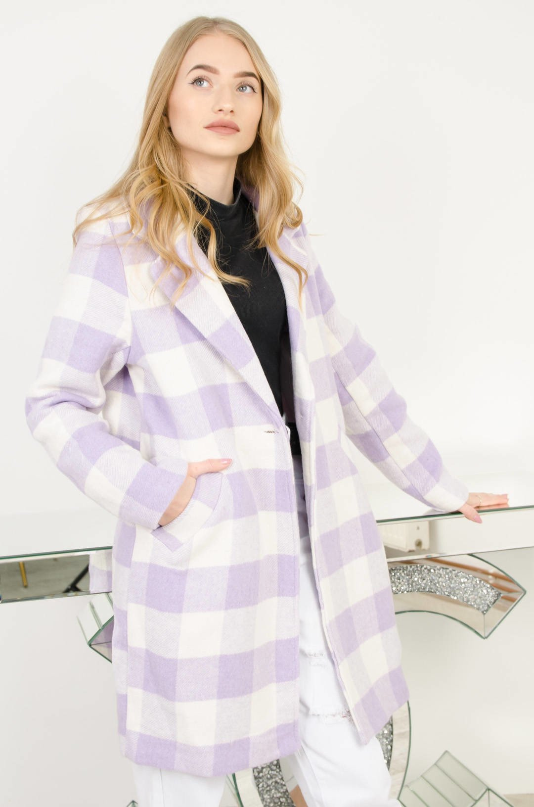 BIAŁO-FIOLETOWY PŁASZCZ W KRATĘ