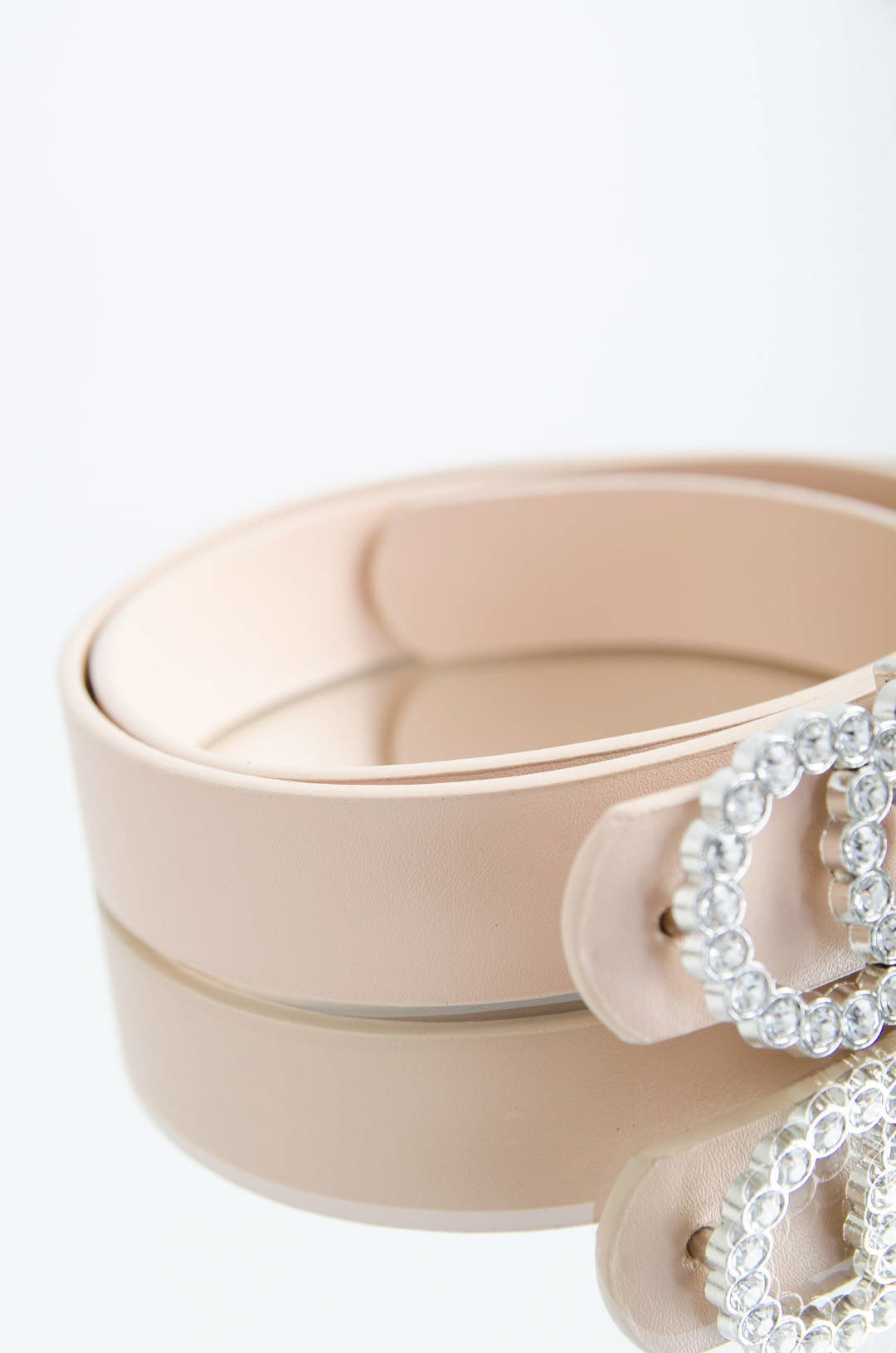 DAMSKI BEŻOWY PASEK Z PODWÓJNĄ KLAMRĄ CYRKONIE