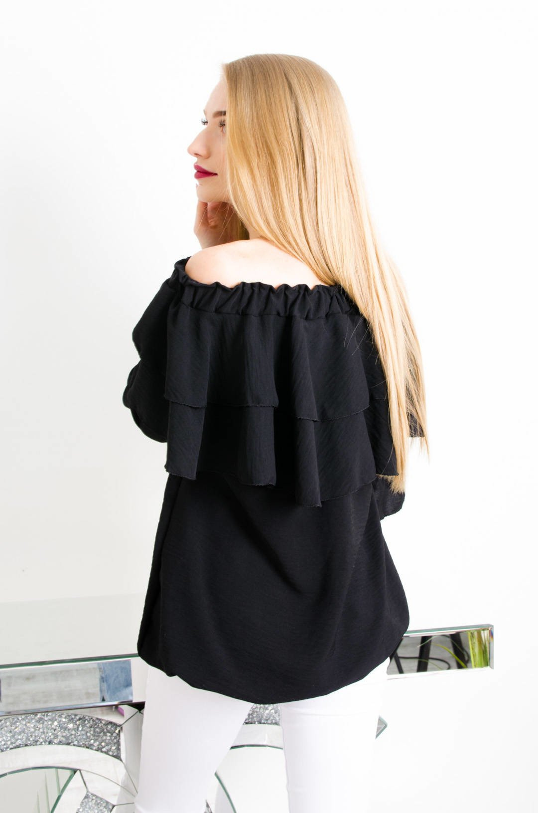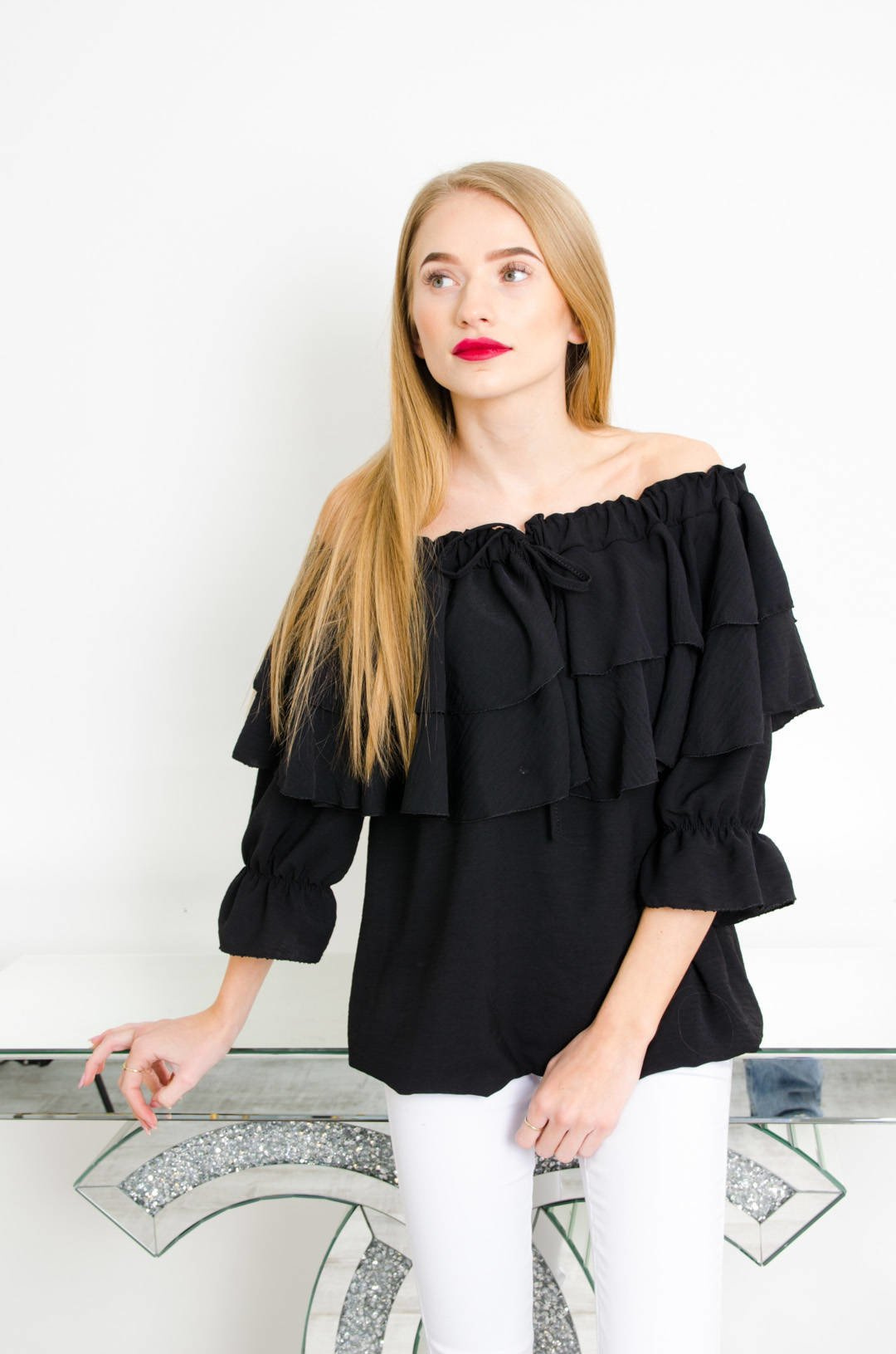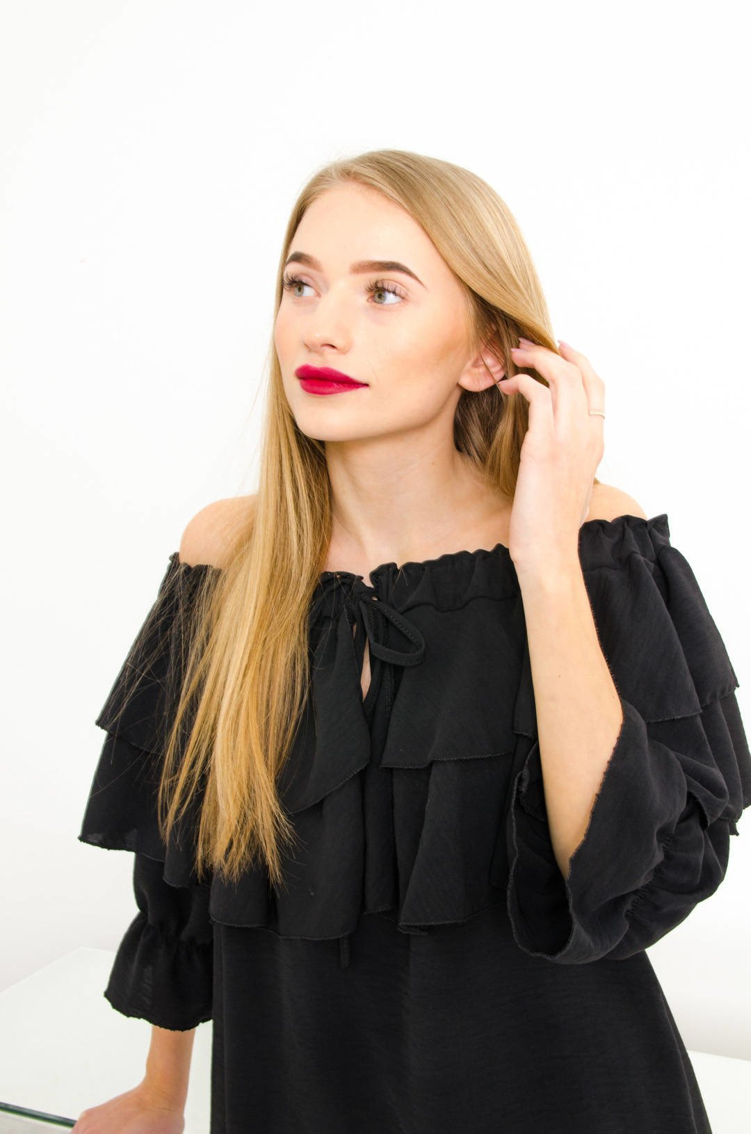 CZARNA BLUZKA HISZPANKA Z WIĄZANIEM W DEKOLCIE