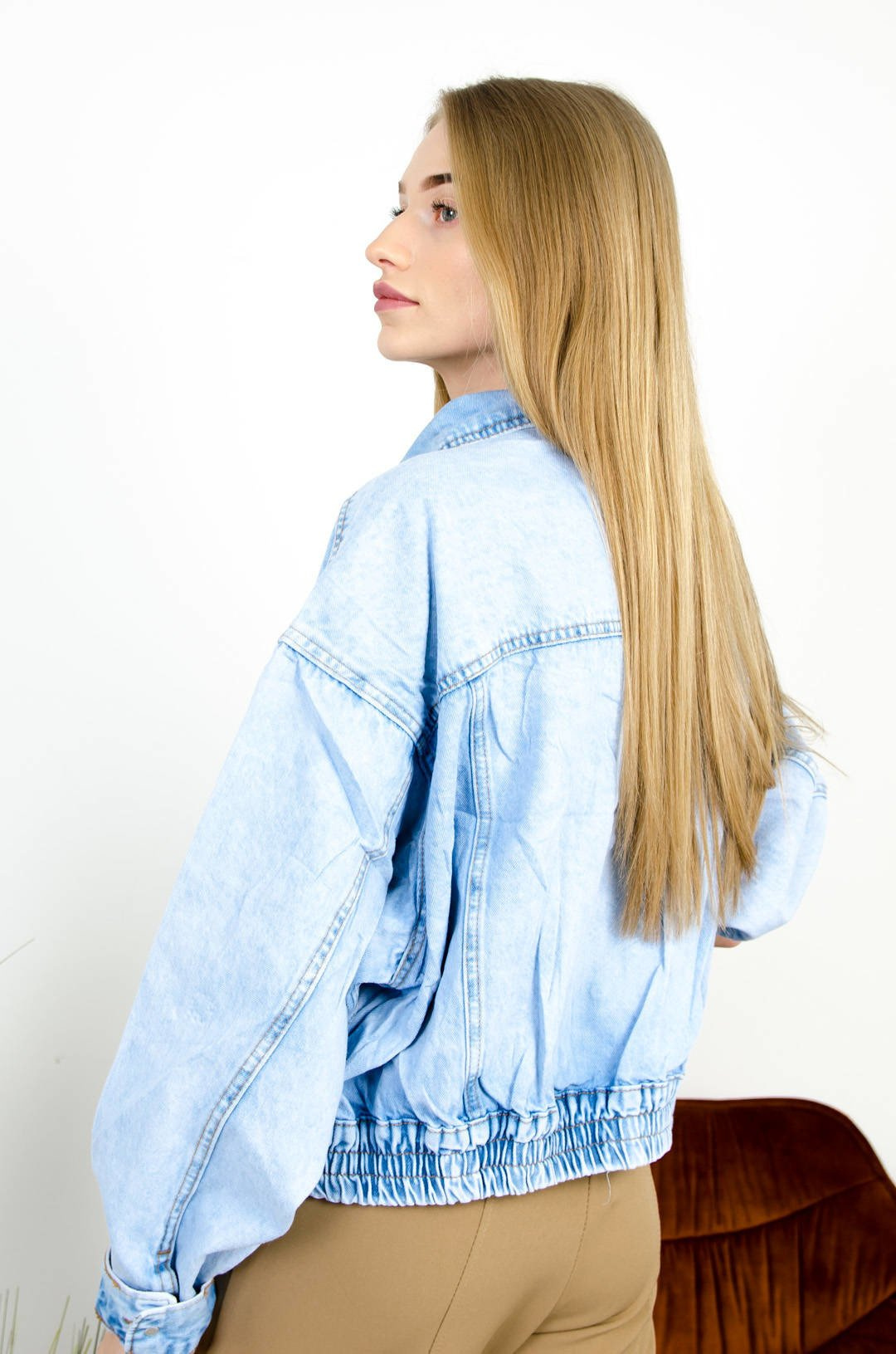 JASNA KRÓTKA KURTKA JEANSOWA ZE ŚCIAGACZEM- BOMBERKA