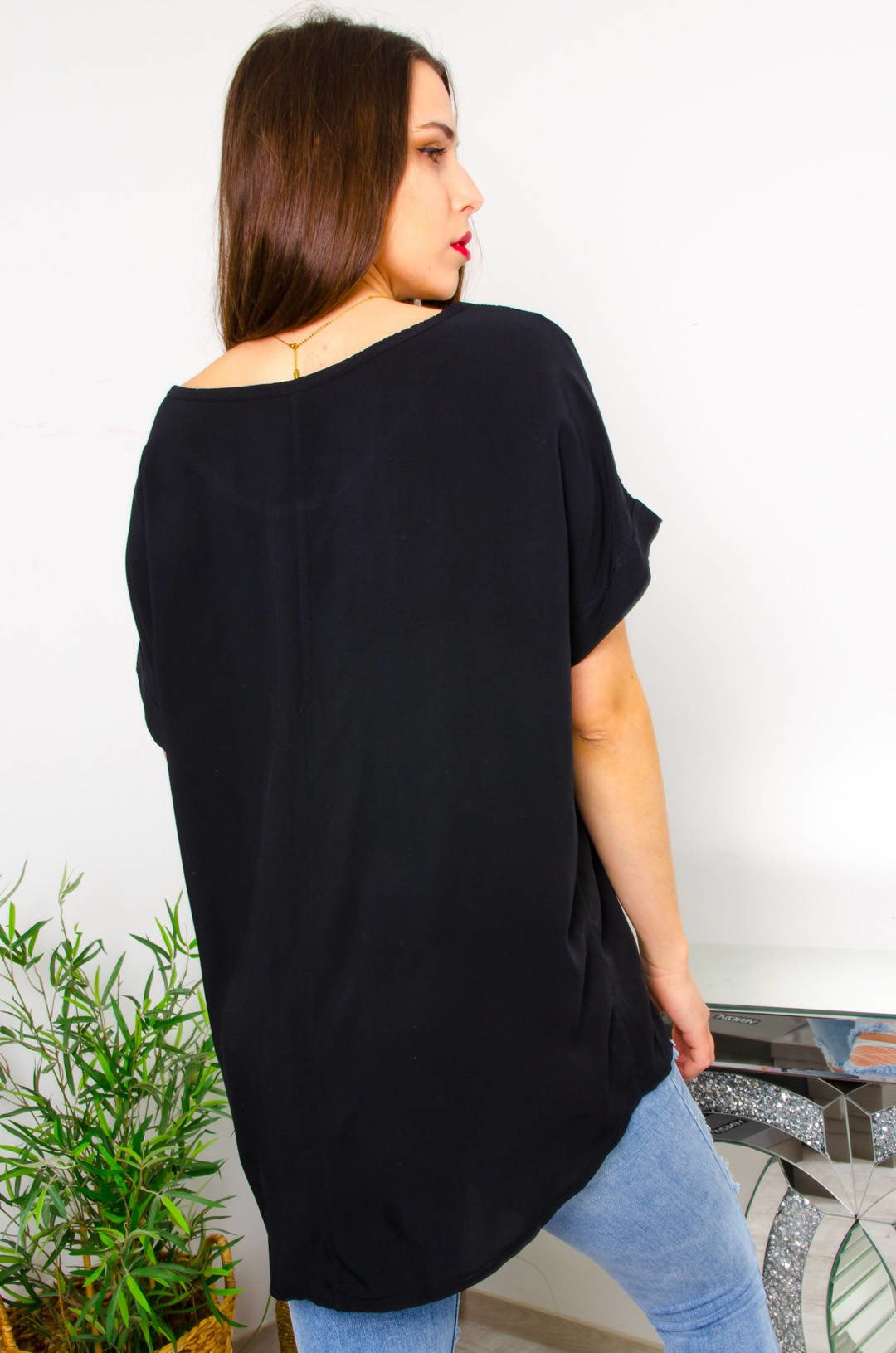 CZARNA BLUZKA ZE ZŁOTĄ APLIKACJĄ I NAPISAMI