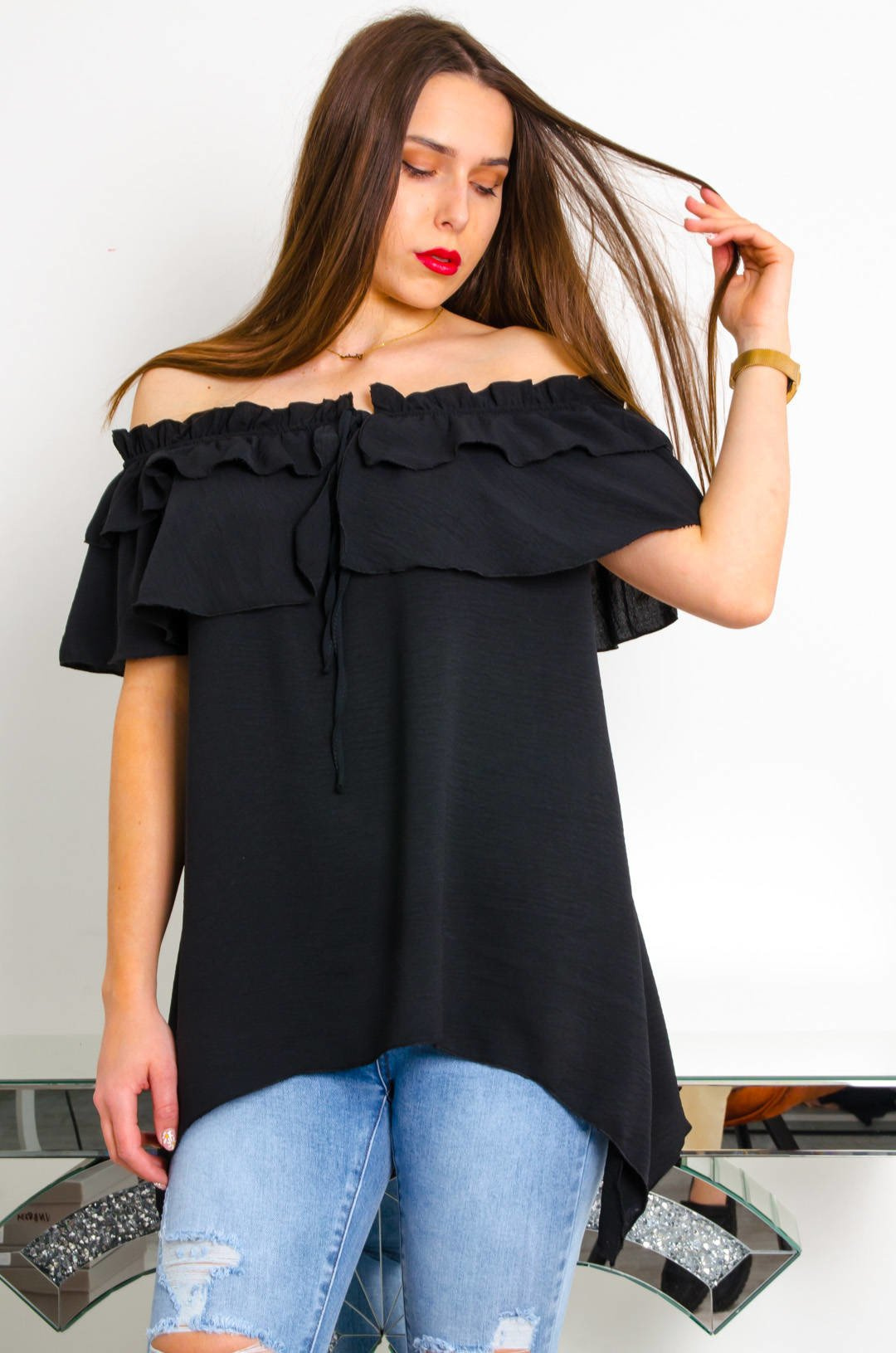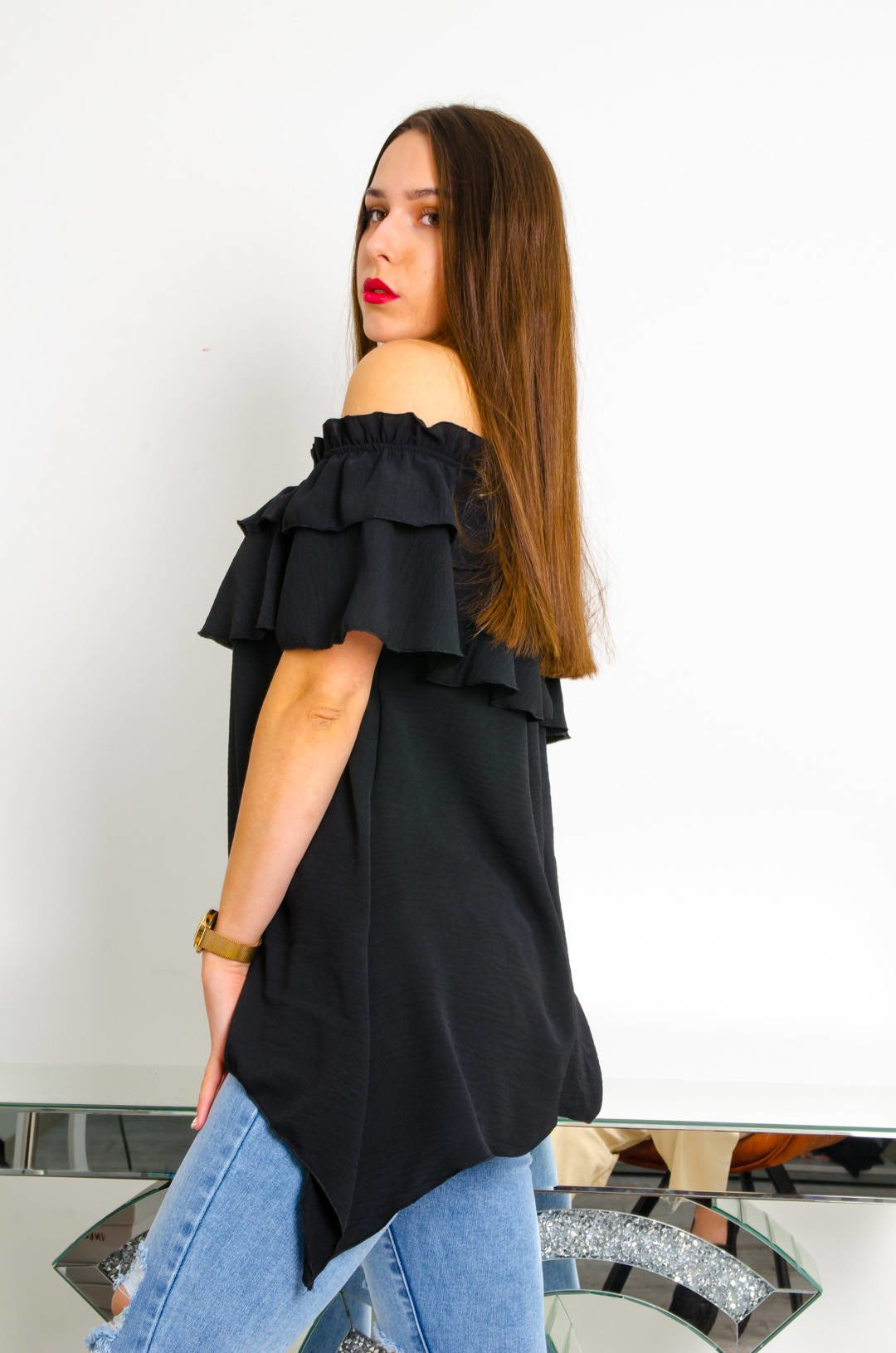 CZARNA BLUZKA Z FALBANĄ ORAZ DŁUŻSZYMI BOKAMI
