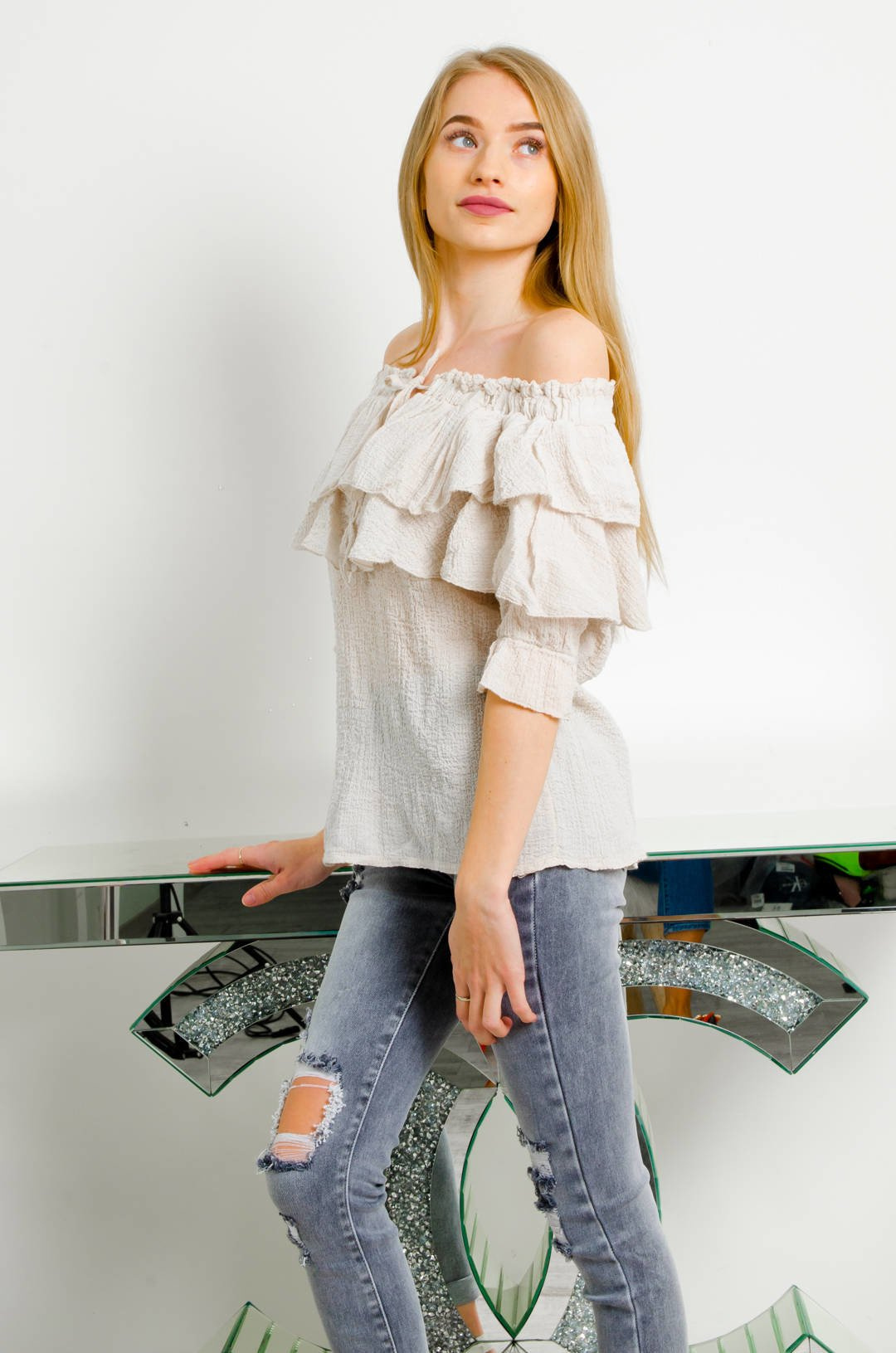 BEŻOWA MUŚLINOWA BLUZKA HISZPANKA