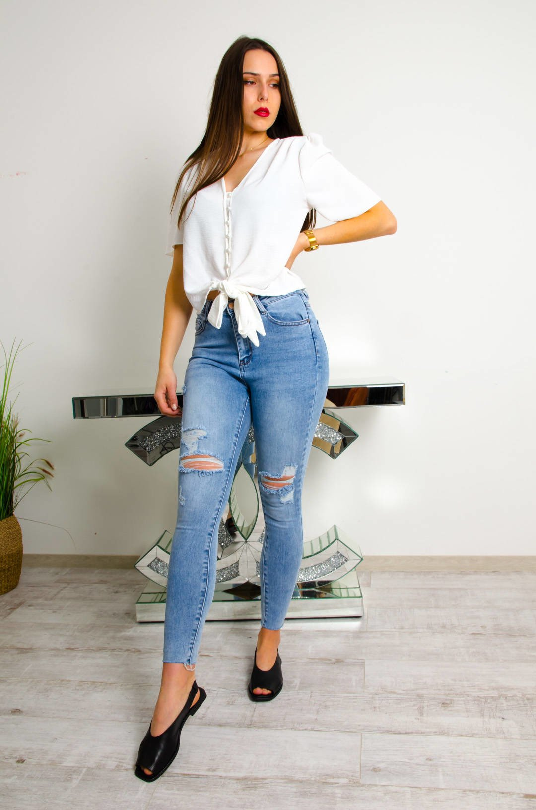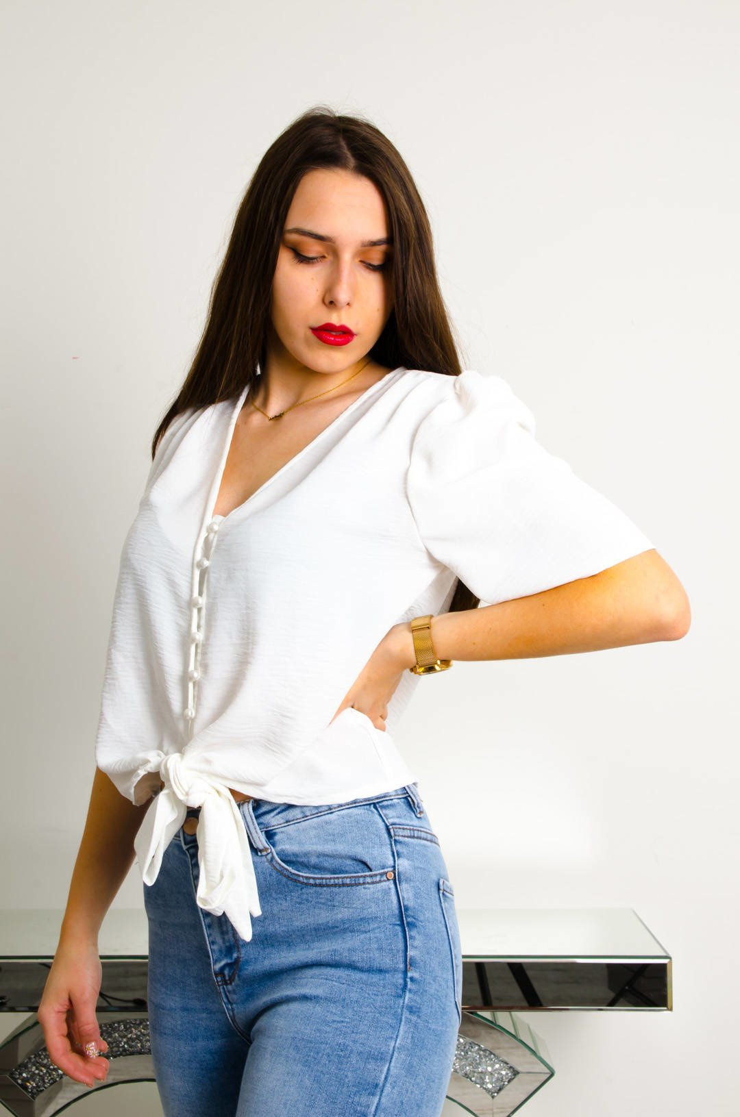 BIAŁA BLUZKA ZAPINANA NA GUZIKI Z WIĄZANIEM NA DOLE