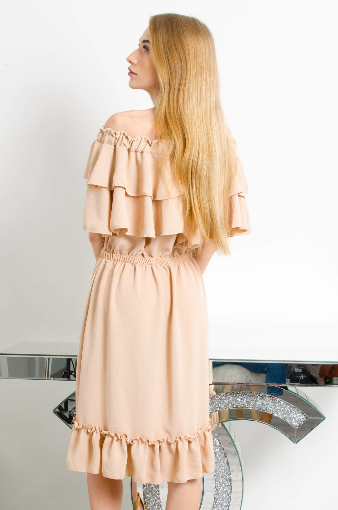 BEŻOWA SUKIENKA HISZPANKA Z FALBANKĄ