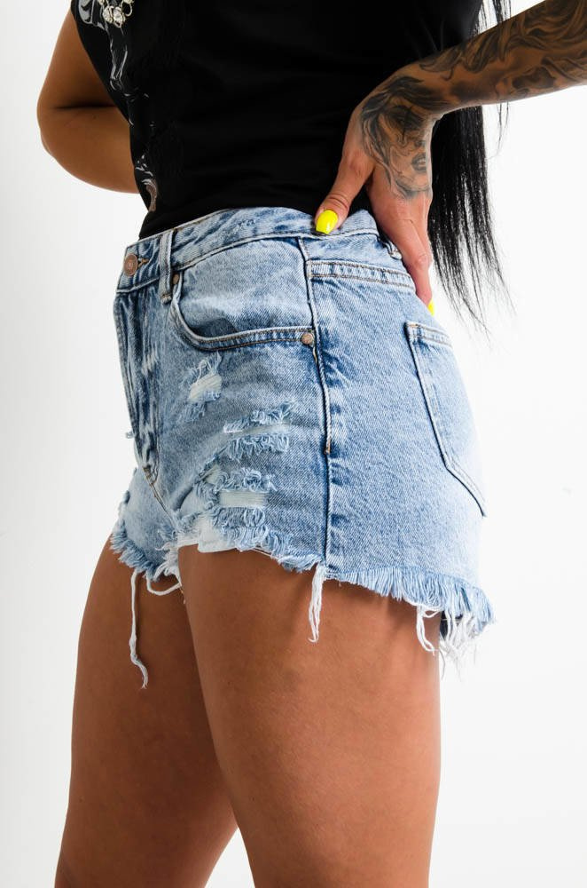 JEANSOWE SZORTY Z PRZETARCIAMI-WYSOKI STAN