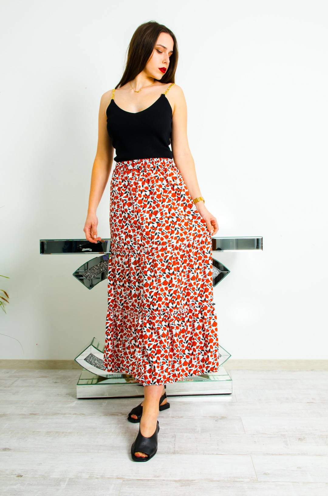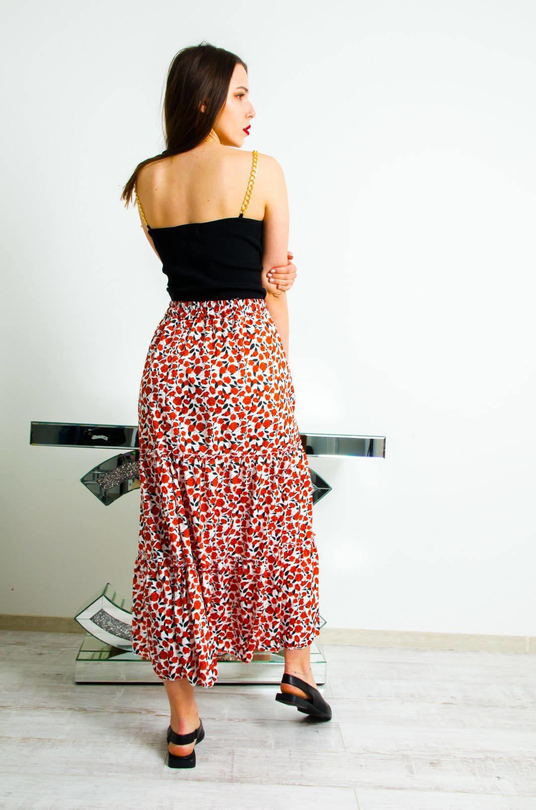 DŁUGA BIAŁO CZERWONA SPÓDNICA MAXI W KWIATY