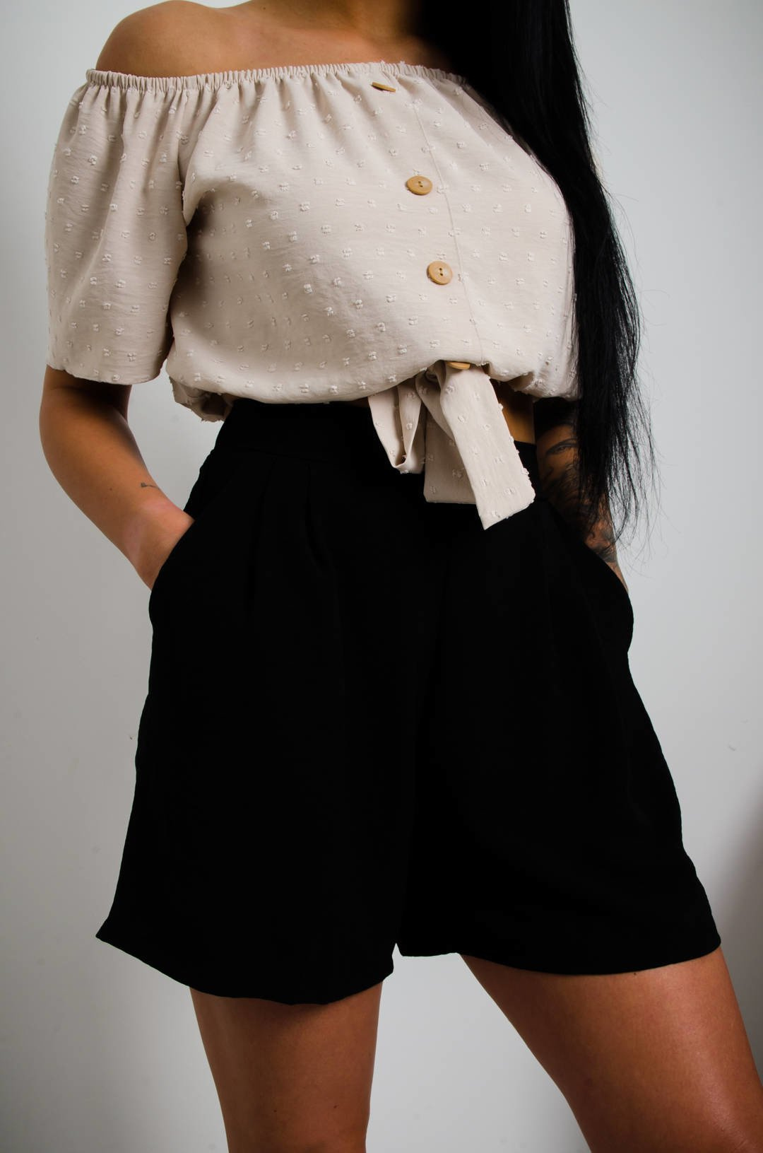 MUŚLINOWE SZORTY PAPERBAG Z WYSOKIM STANEM