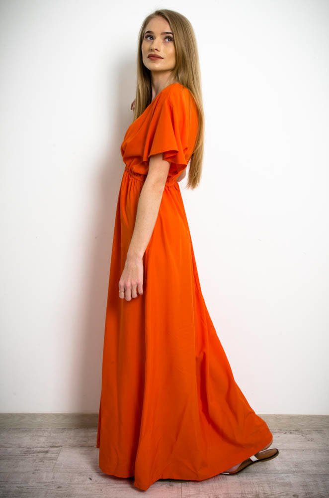 DŁUGA SUKIENKA MAXI Z KOPERTOWYM DEKOLTEM W KOLORZE POMARAŃCZOWYM