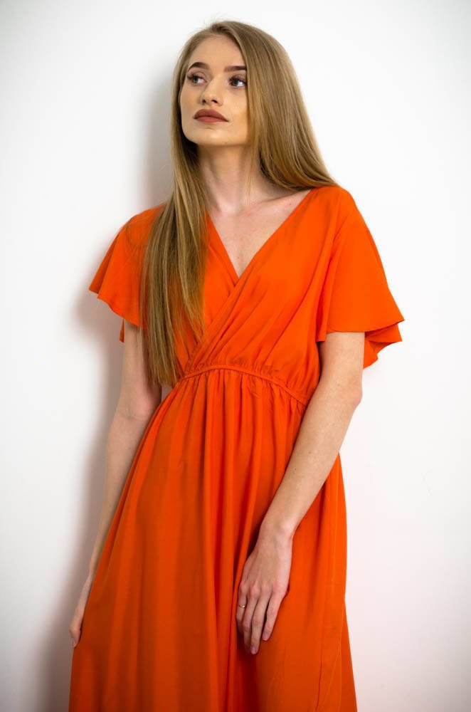 DŁUGA SUKIENKA MAXI Z KOPERTOWYM DEKOLTEM W KOLORZE POMARAŃCZOWYM