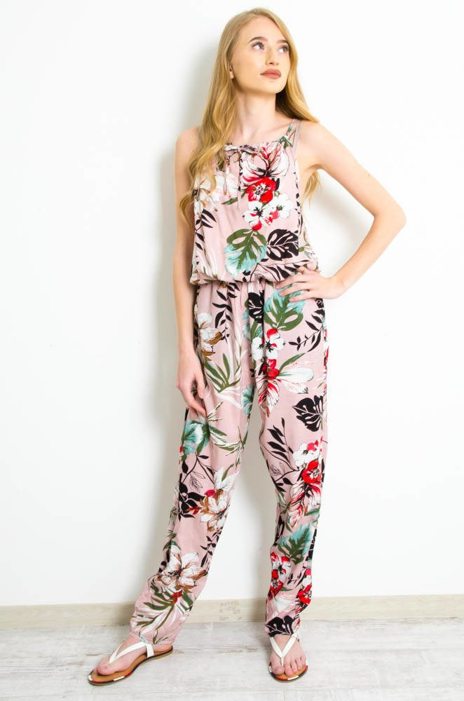 DŁUGI KOMBINEZON NA CIENKICH RAMIĄCZKACH W KWIATY - RÓŻOWY