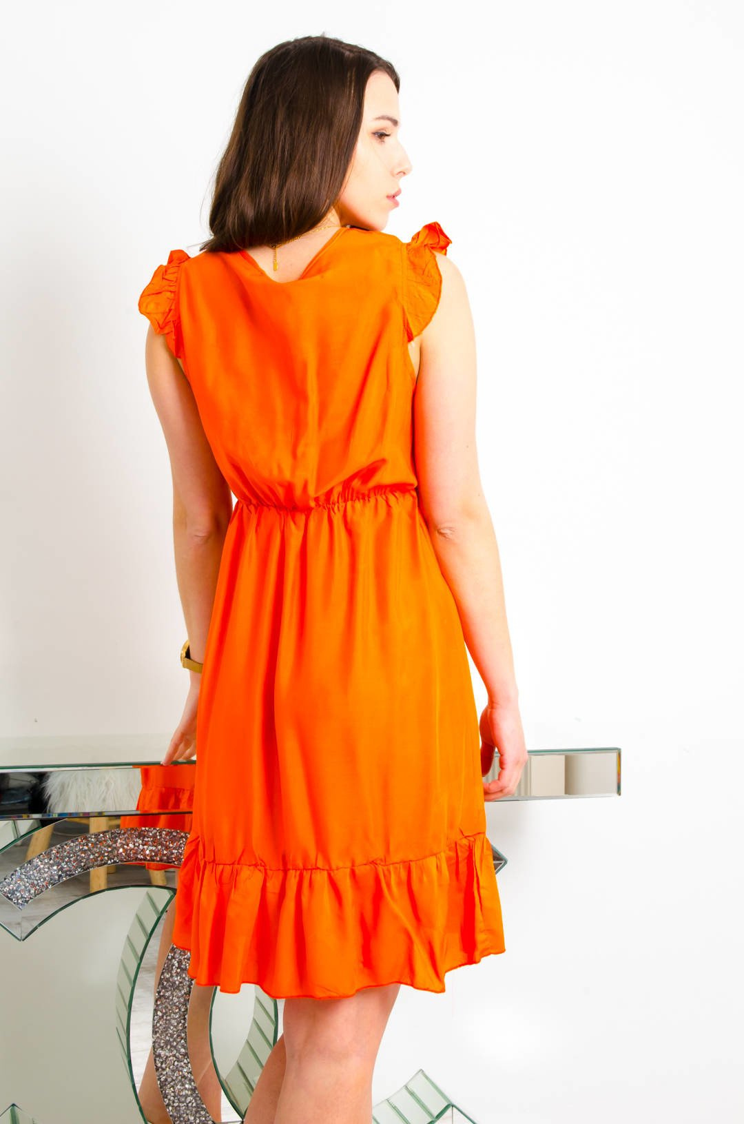 POMARAŃCZOWA KRÓTKA ZWIEWNA SUKIENKA Z KOPERTOWYM DEKOLTEM