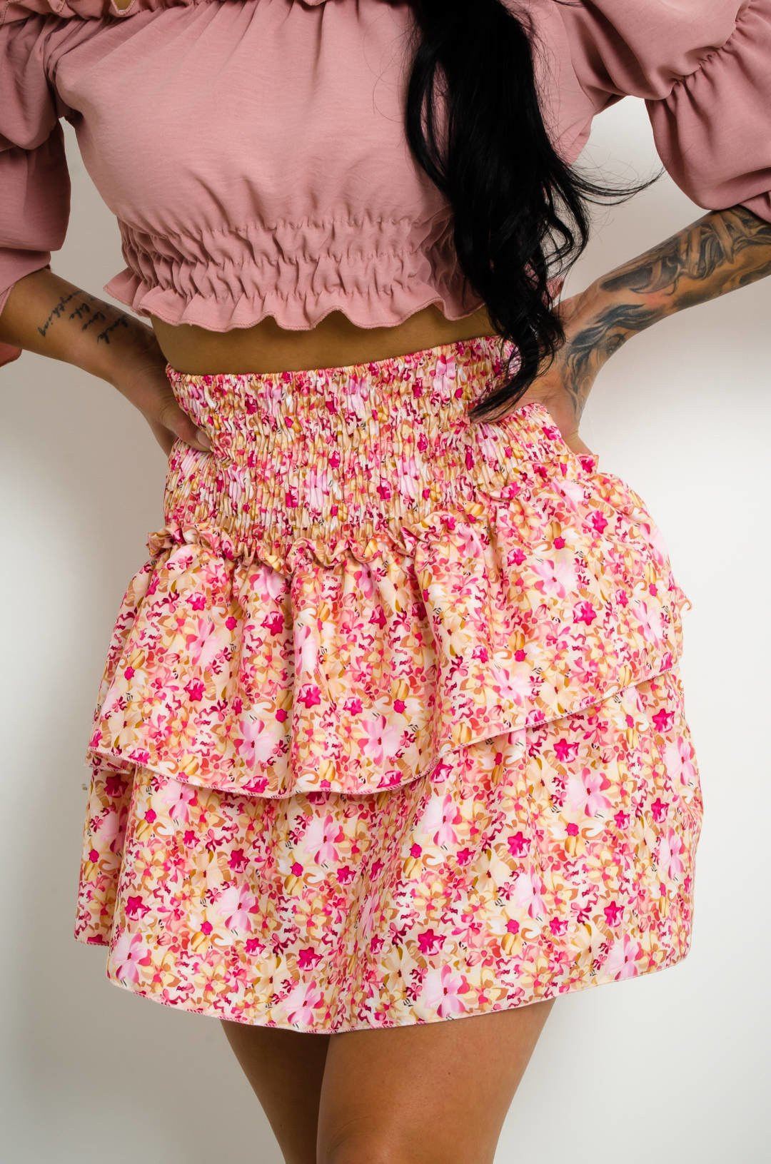 SPÓDNICA MINI W KWIATY Z FALBANAMI
