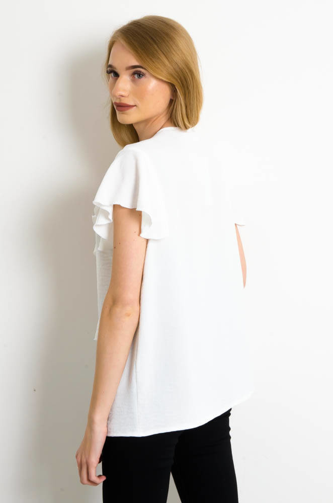 BIAŁA BLUZKA KOSZULOWA Z ŻABOTEM