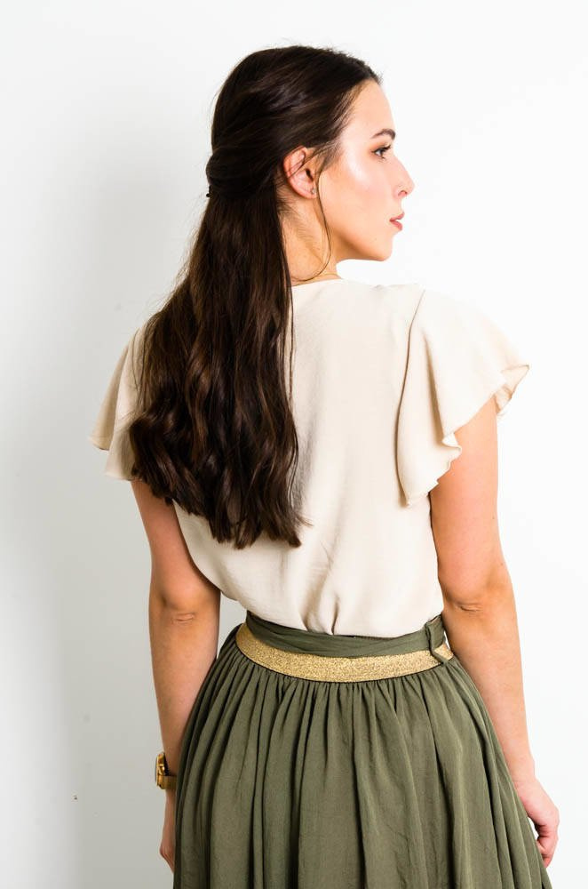 BEŻOWA BLUZKA KOSZULOWA Z ŻABOTEM