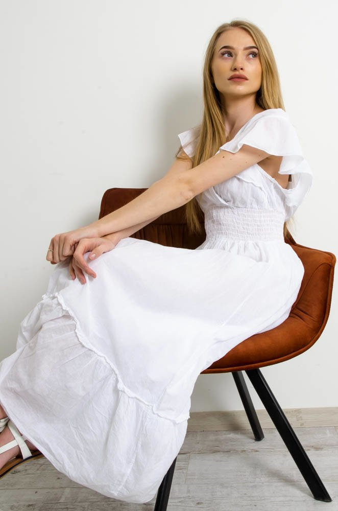 BIAŁA DŁUGA MUŚLINOWA SUKIENKA NA ZAKŁĄDKĘ MAXI