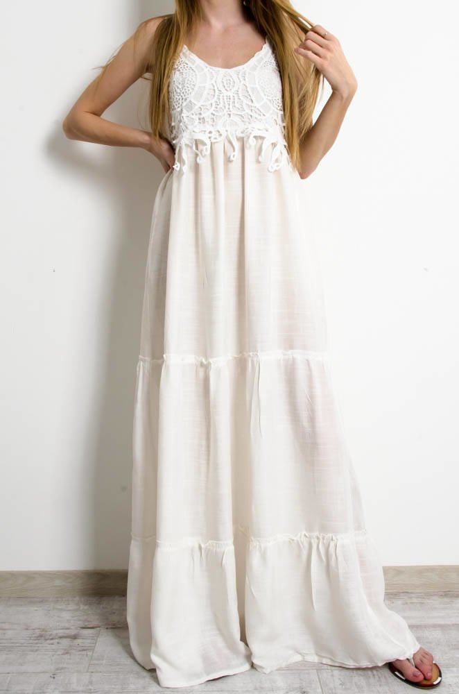 BIAŁA SUKIENKA MAXI NA RAMIĄCZKACH Z AŻUROWĄ GÓRĄ