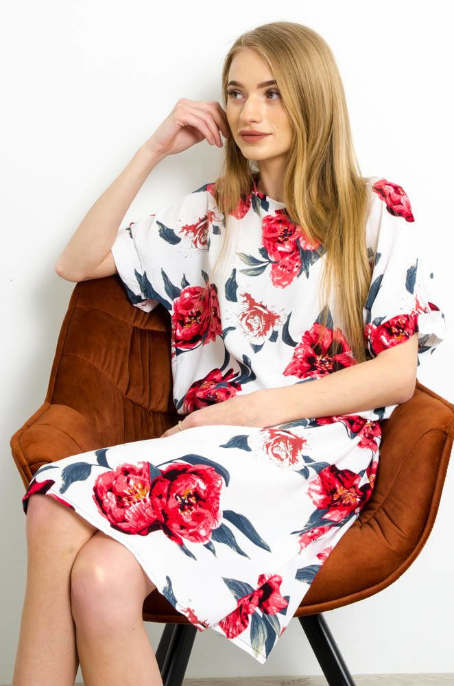 BIAŁA SUKIENKA W KWIATY Z DEKOLTEM W ŁÓDKĘ