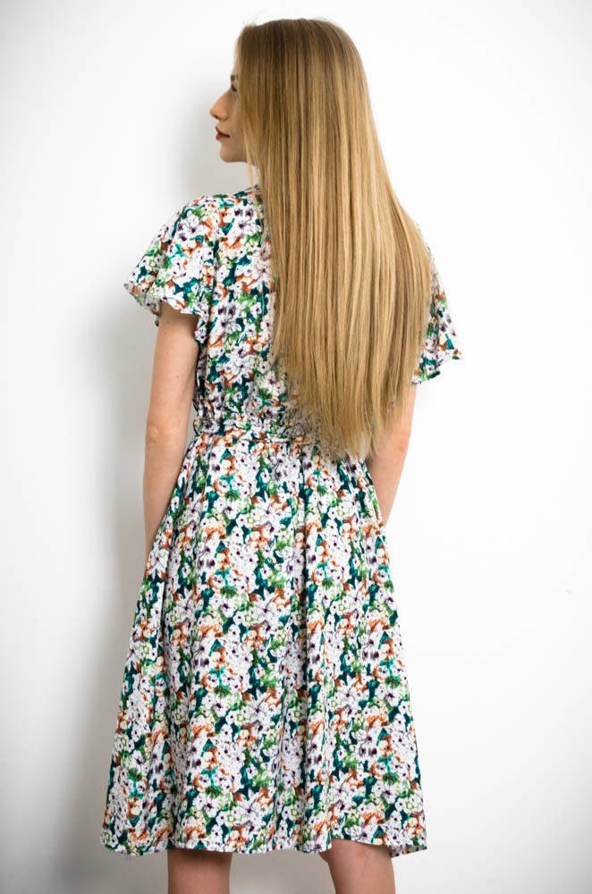 ZIELONA KWIECISTA SUKIENKA Z FALBANKĄ W RĘKAWACH