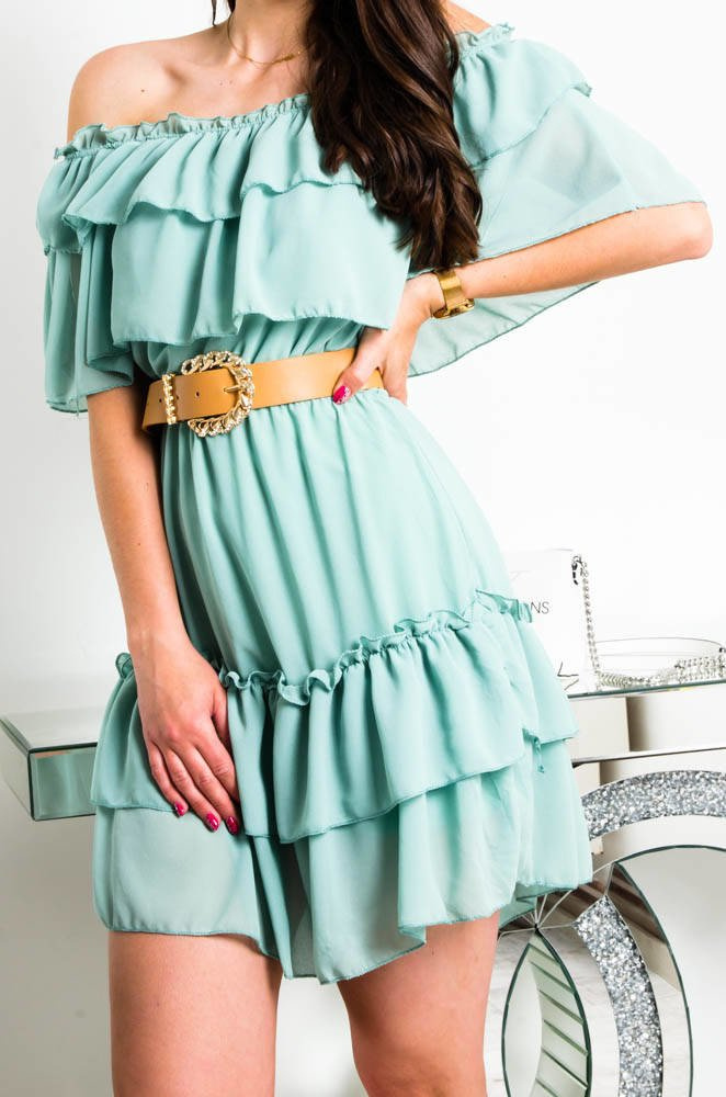 ZIELONA SUKIENKA HISZPANKA Z GUMĄ W PASIE