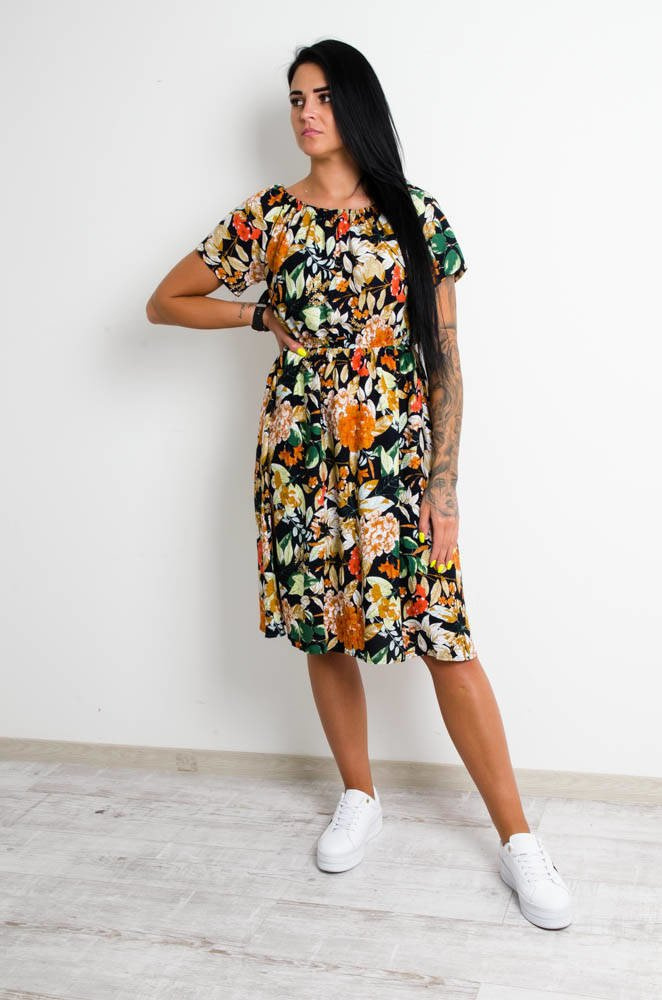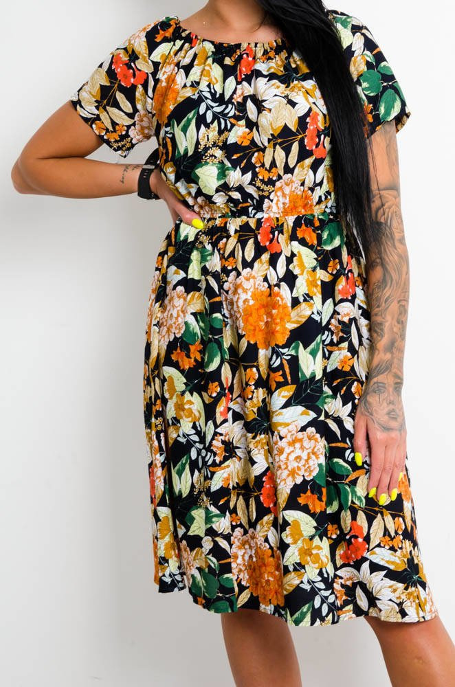 GRANATOWA SUKIENKA HISZPANKA W KWIATY