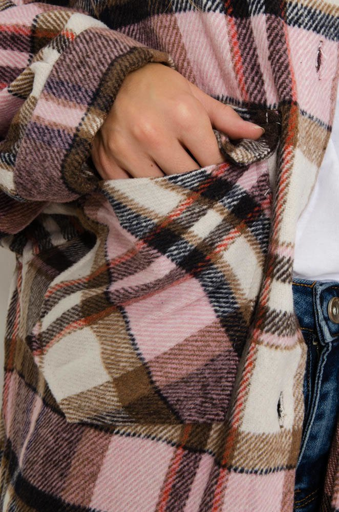 KURTKA KOSZULOWA W KRATĘ - RÓŻOWA