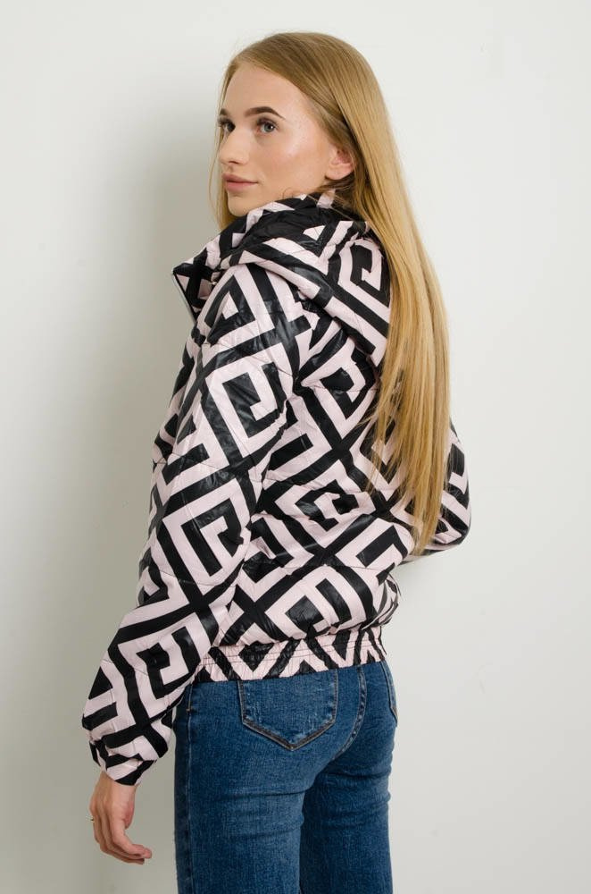 RÓŻOWO-CZARNA KURTKA ZE WZOREM