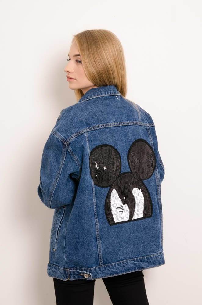 NIEBIESKA KURTKA JEANSOWA Z NASZYWKĄ NA PLECACH