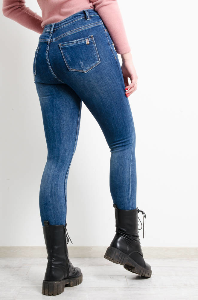 CIEMNE SPODNIE JEANSOWE Z DELIKATNYMI PRZETARCIAMI