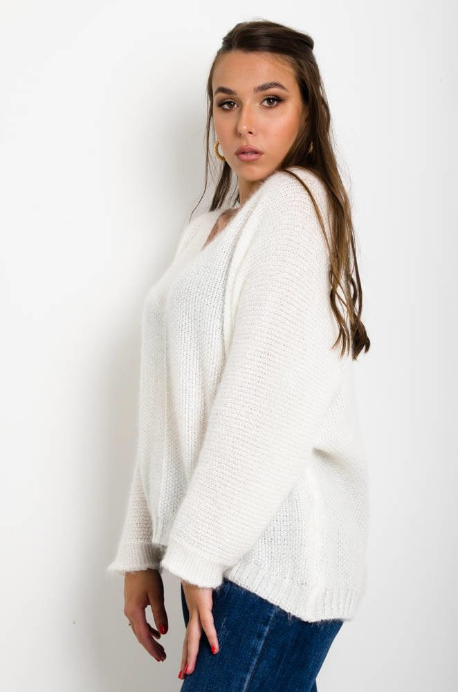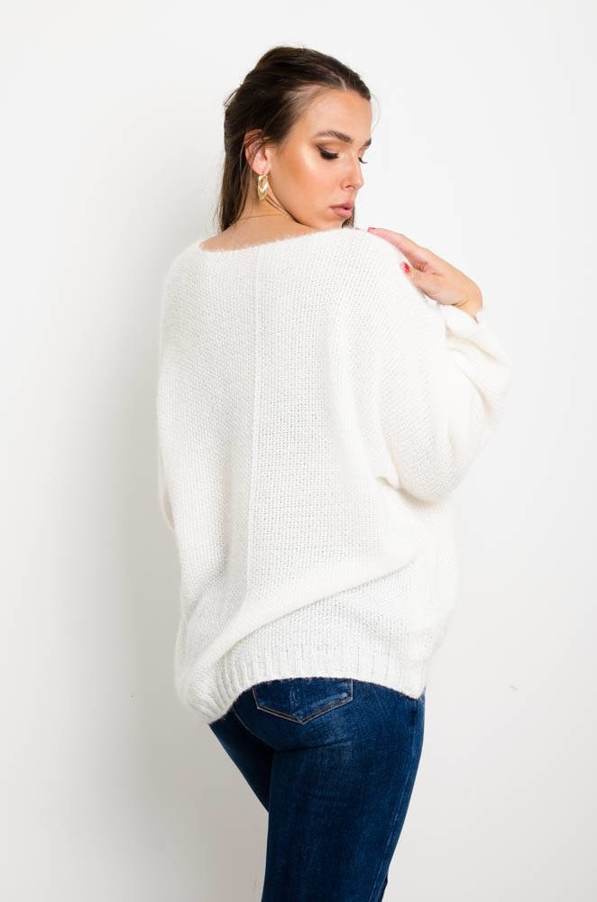 BIAŁY SWETER NIETOPERZ Z DEKOLTEM W SZPIC
