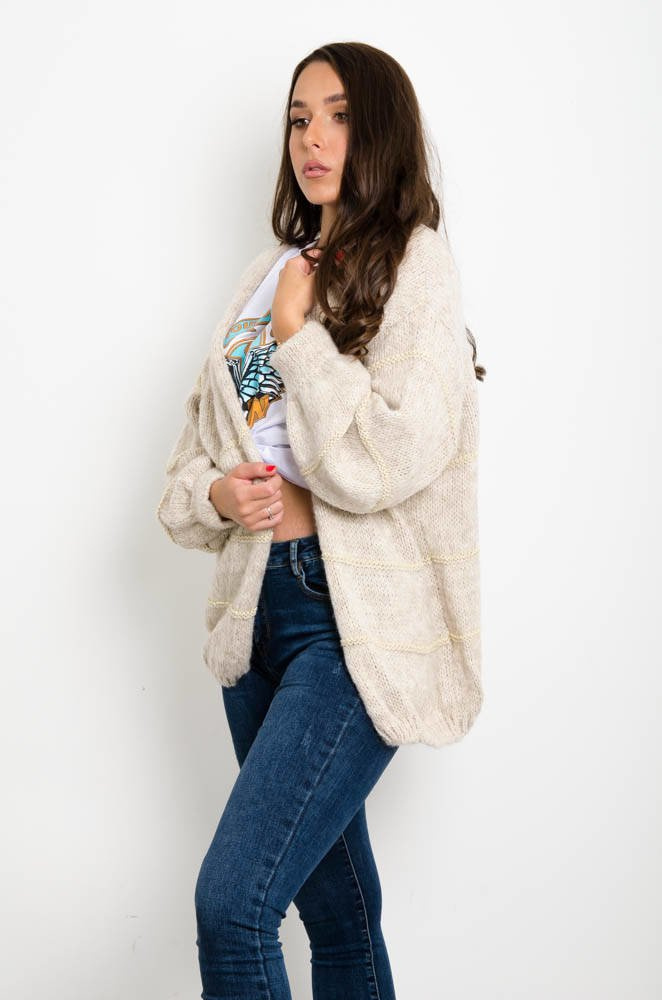 BEŻOWO-ZŁOTY SWETER KARDIGAN - NARZUTA