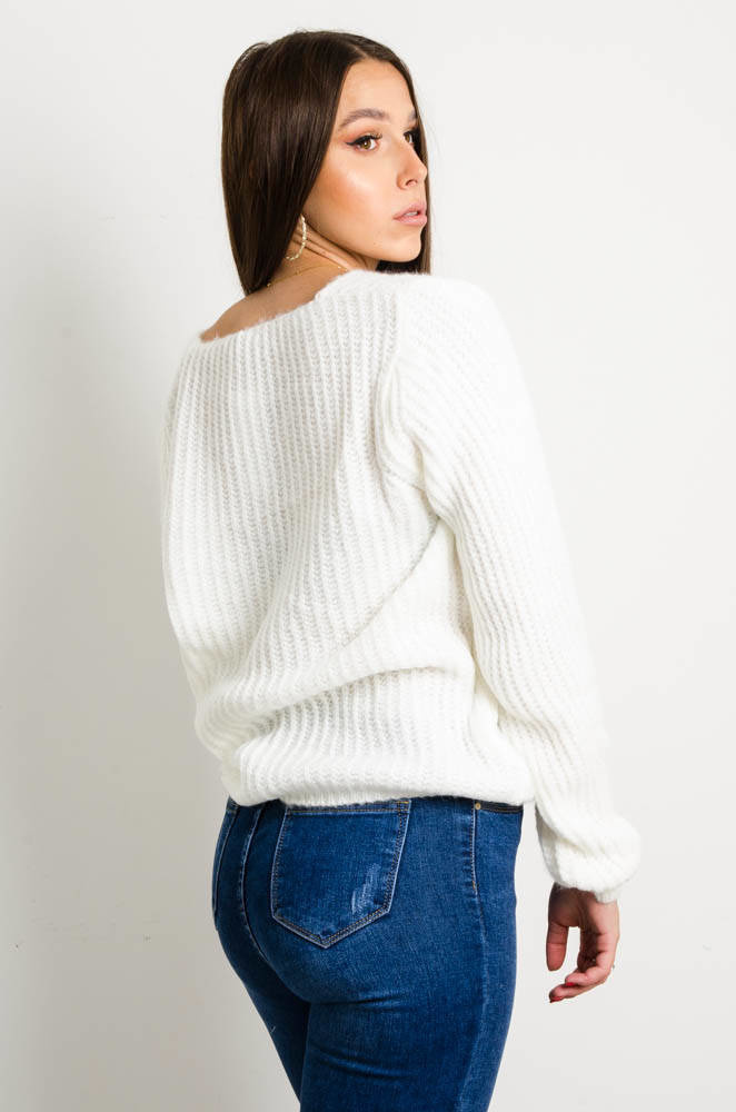 BIAŁY SWETER Z DEKOLTEM W SZPIC