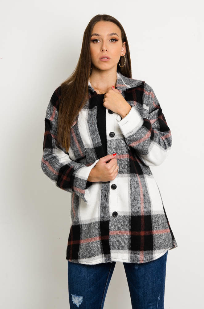 CZARNY PŁASZCZ KOSZULOWY W KRATĘ
