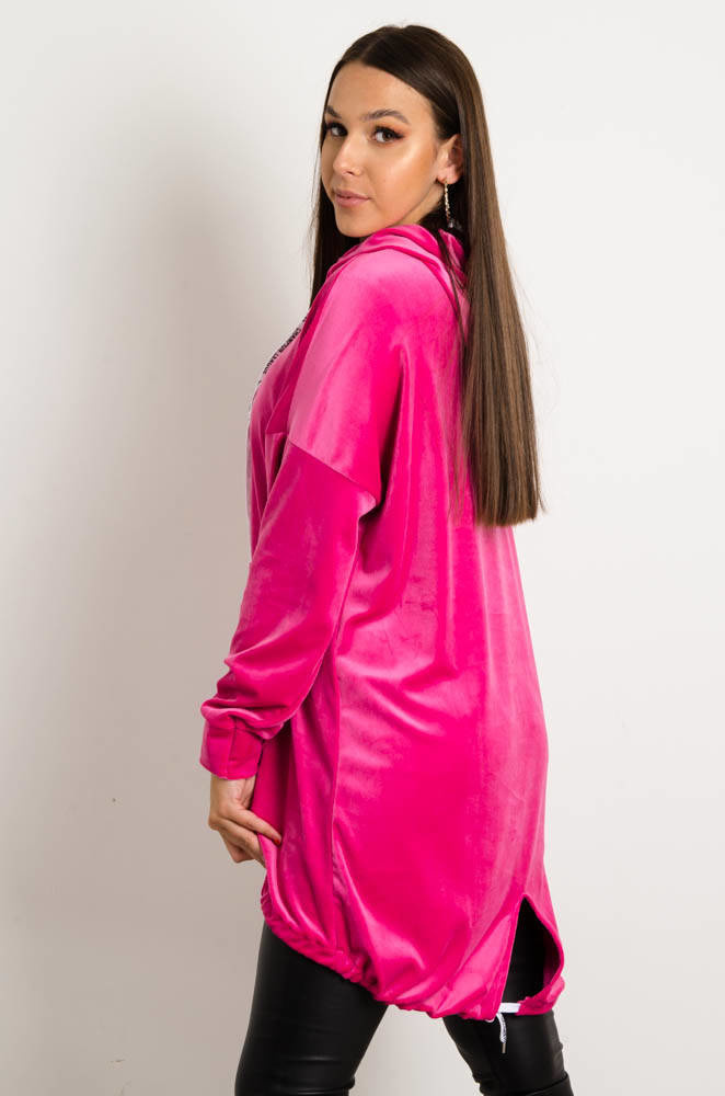 RÓŻOWA WELUROWA SUKIENKA Z KAPTUREM