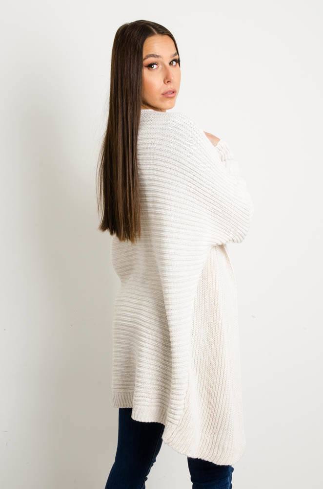 BEŻOWA DŁUGA NARZUTKA SWETERKOWA- KARDIGAN