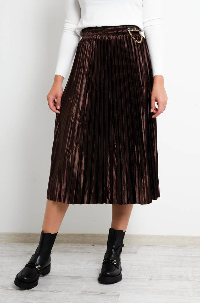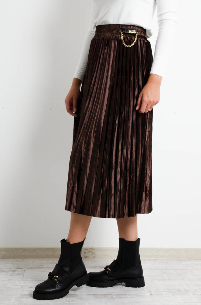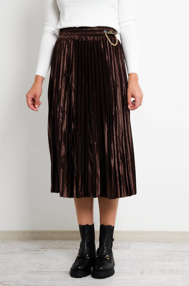 BRĄZOWA WELUROWA SPÓDNICA Z OZDOBNYM ŁAŃCUSZKIEM