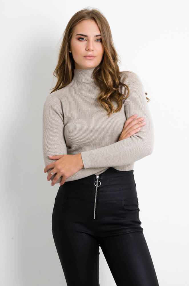 BEŻOWY SWETEREK PRĄŻEK Z PÓŁGOLFEM