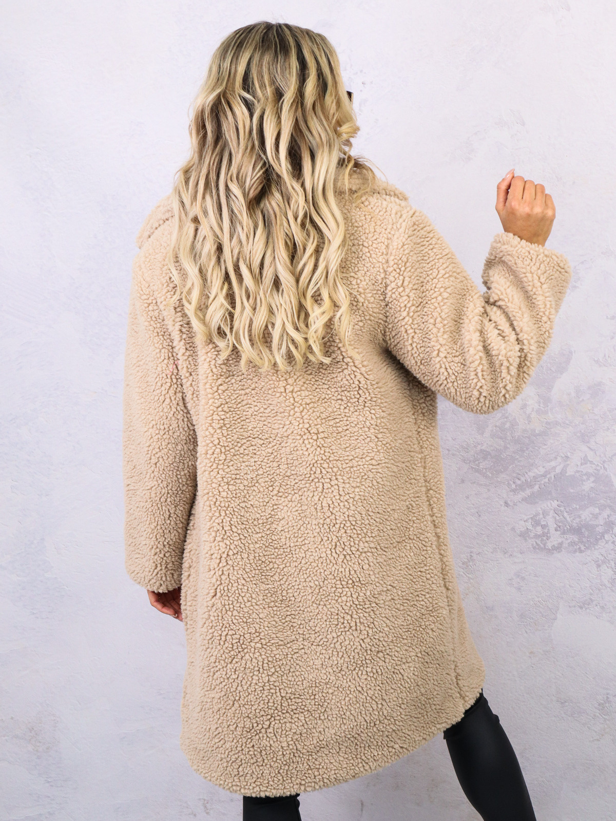 BRĄZOWY PŁASZCZ PLUSZOWY Z KOŁNIERZEM