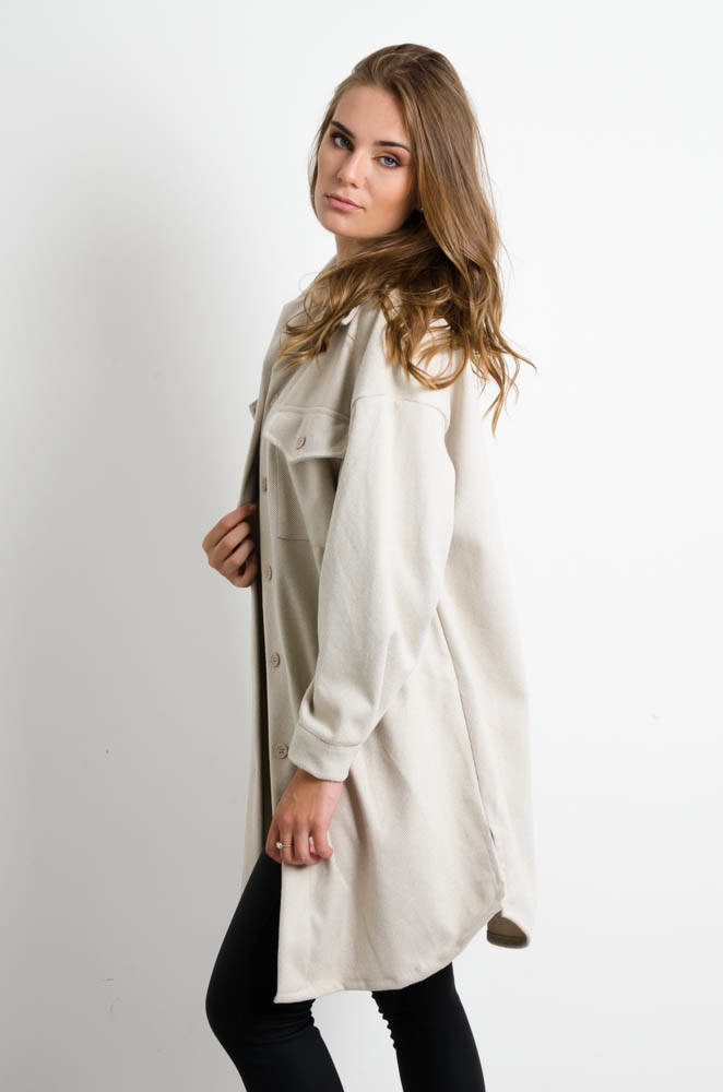 BEŻOWY DŁUGI PŁASZCZ KOSZULOWY