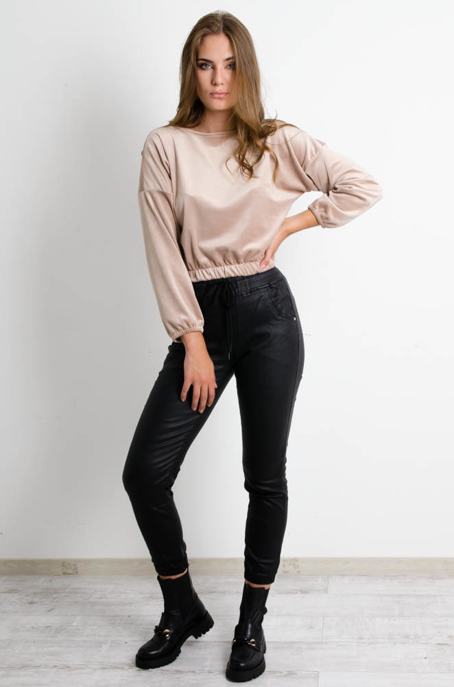BEŻOWA KRÓTKA BLUZA WELUROWA