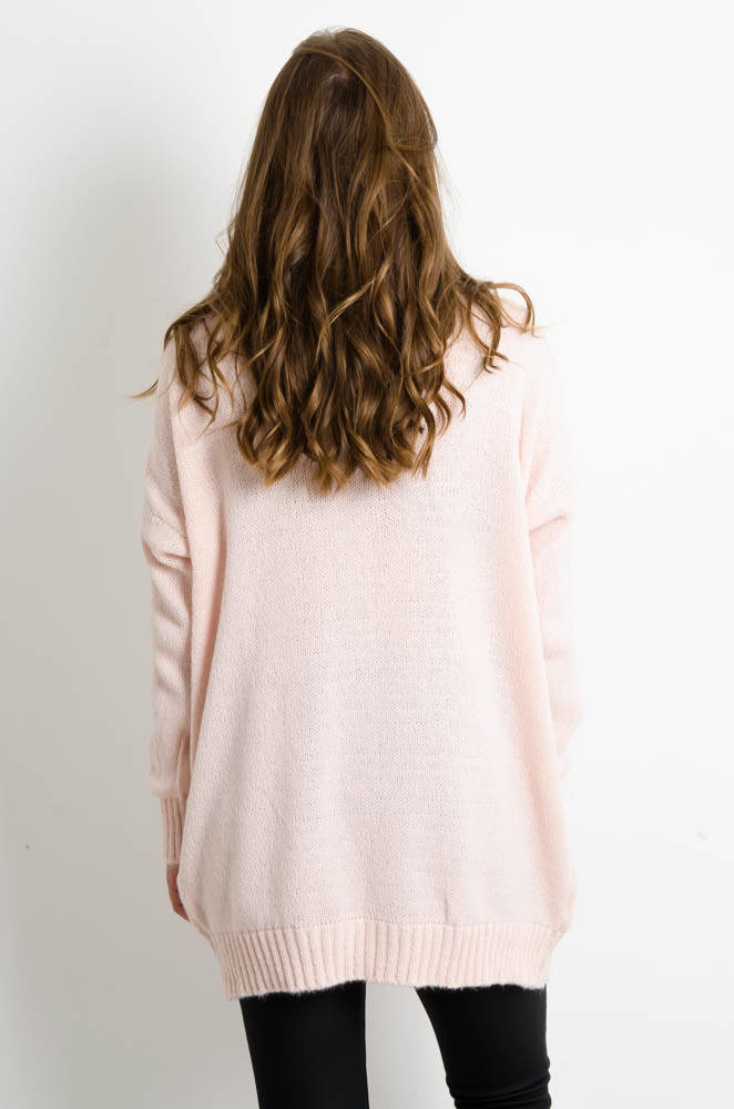 DŁUGI RÓŻOWY SWETER Z KIESZENAMI