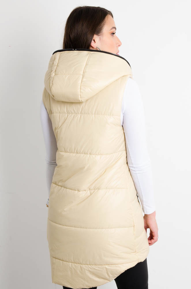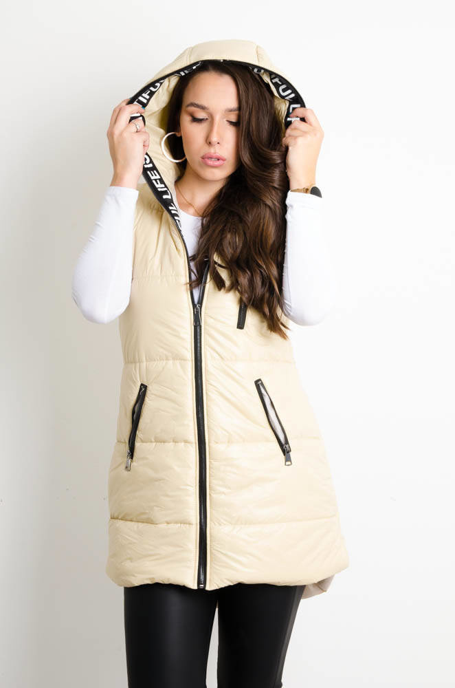 BEŻOWA DŁUGA KAMIZELKA Z KAPTUREM