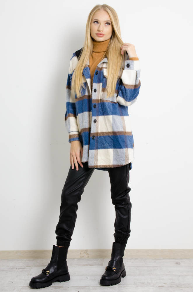 GRANATOWA KURTKA KOSZULA W KRATĘ Z KAPTUREM