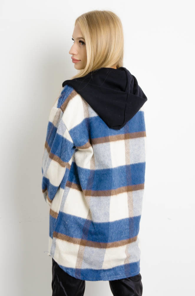 GRANATOWA KURTKA KOSZULA W KRATĘ Z KAPTUREM