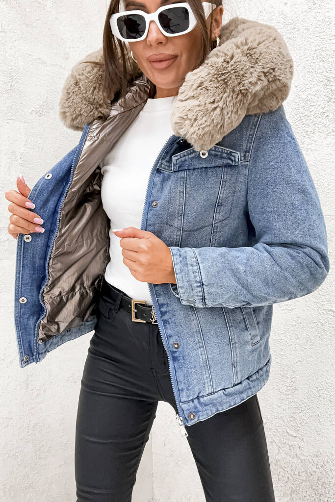DWUSTRONNA ZŁOTO-JEANSOWA KURTKA Z FUTERKIEM