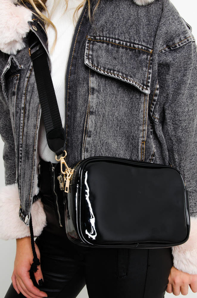 CZARNA LAKIEROWANA TOREBKA LISTONOSZKA